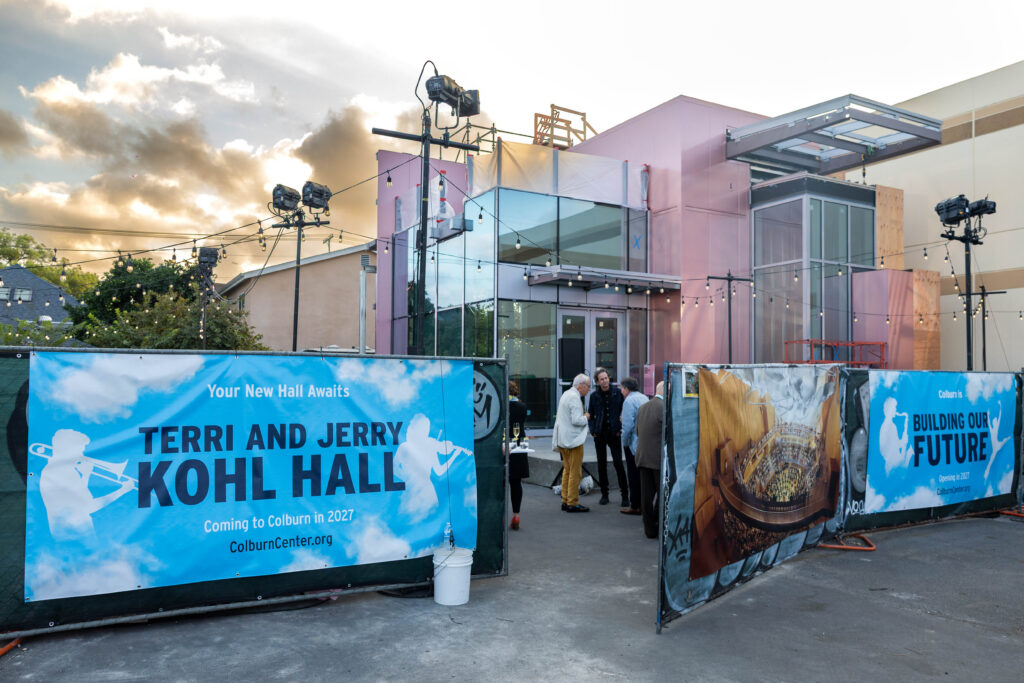 Steel Topping-Out Celebration welcomes skilled tradespeople, local government and city leaders, media, as well as Colburn students, faculty, donors, and community to watch the final steel beam be mounted on Terri and Jerry Kohl concert hall.