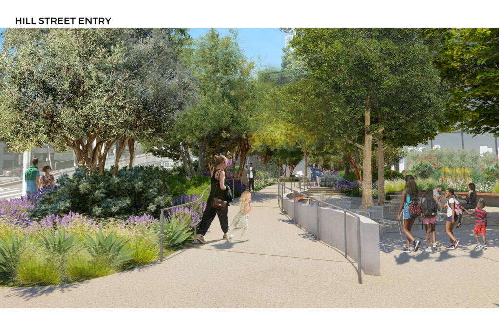 Henry and Queence Choi name the Choi Family Garden, the verdant public gathering space outside the 2nd and Hill Street entrance.