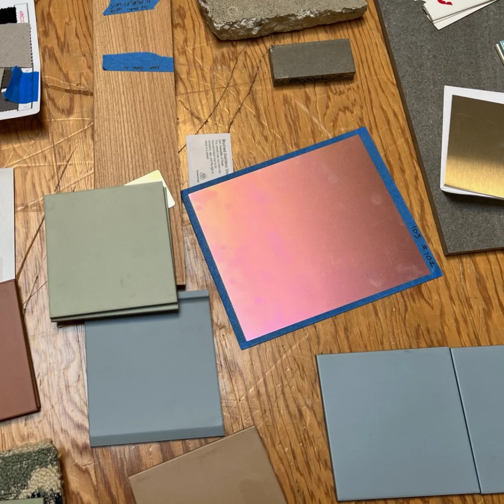 In this stage of the creative process, Gehry Partners is refining the materials for every aspect of the project, the most iconic of which will be the luminescent pink paneling on Terri and Jerry Kohl Hall.